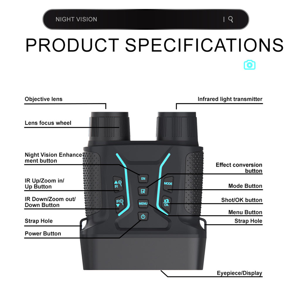 Application scenarios include hunting, reconnaissance, security and surveillance, camping fun, exploring caves, night fishing and boating, wildlife observation and photography, etc.
