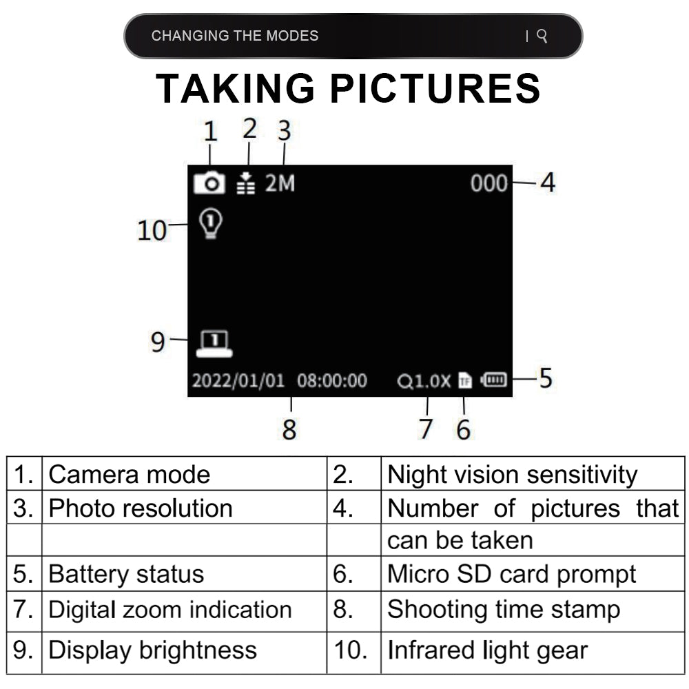 Photo resolution 36M, 12M, 8M, 5M, 3M, 2M, 1M, 480P night vision enhancement